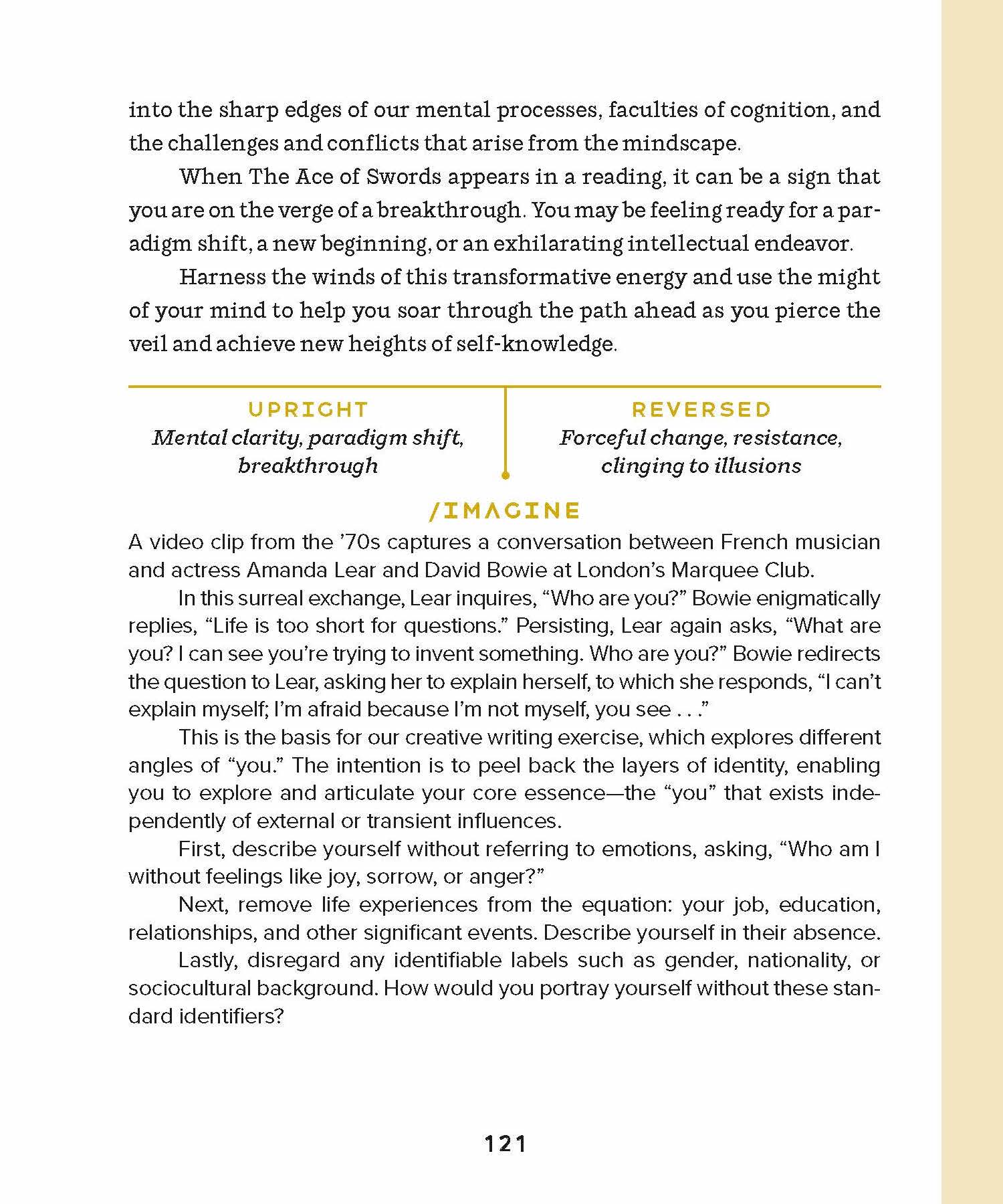 • Fully illustrated guidebook. The full-color guidebook includes images of each card, alongside card descriptions and tailored prompts, as well as sample card spreads to guide your practice.
