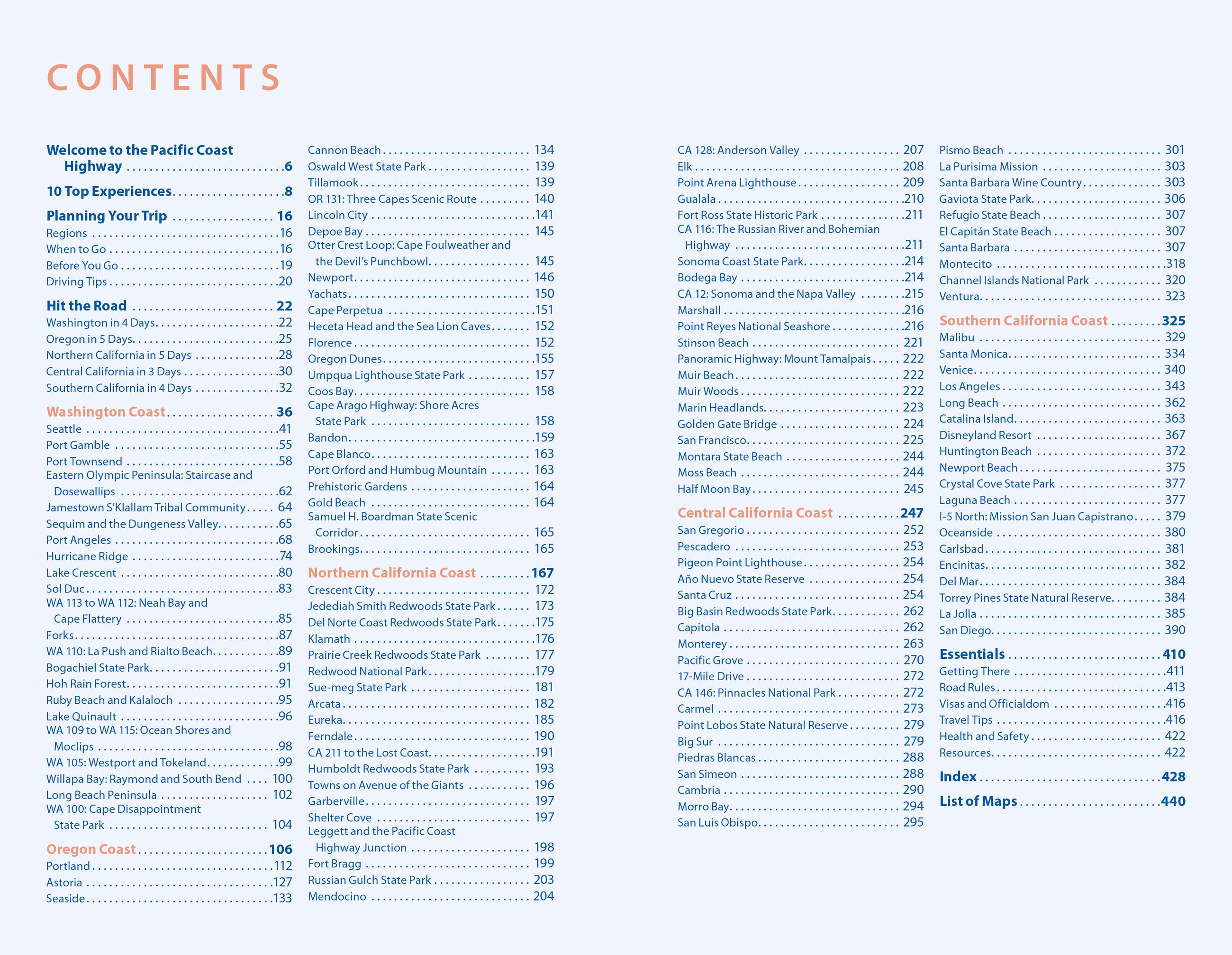• Eat, sleep, stop and explore: With lists of the best beaches, views, seafood restaurants, and more, you’ll cruise by sky-scraping redwoods, misty rainforests, and the black sands of the Lost Coast. Slurp fresh-caught oysters, order up authentic street tacos, or kick back with a craft beer. Hike among the tallest trees on Earth, go whale-watching, tour Seattle’s underground old city, and winery-hop in scenic Santa Barbara
