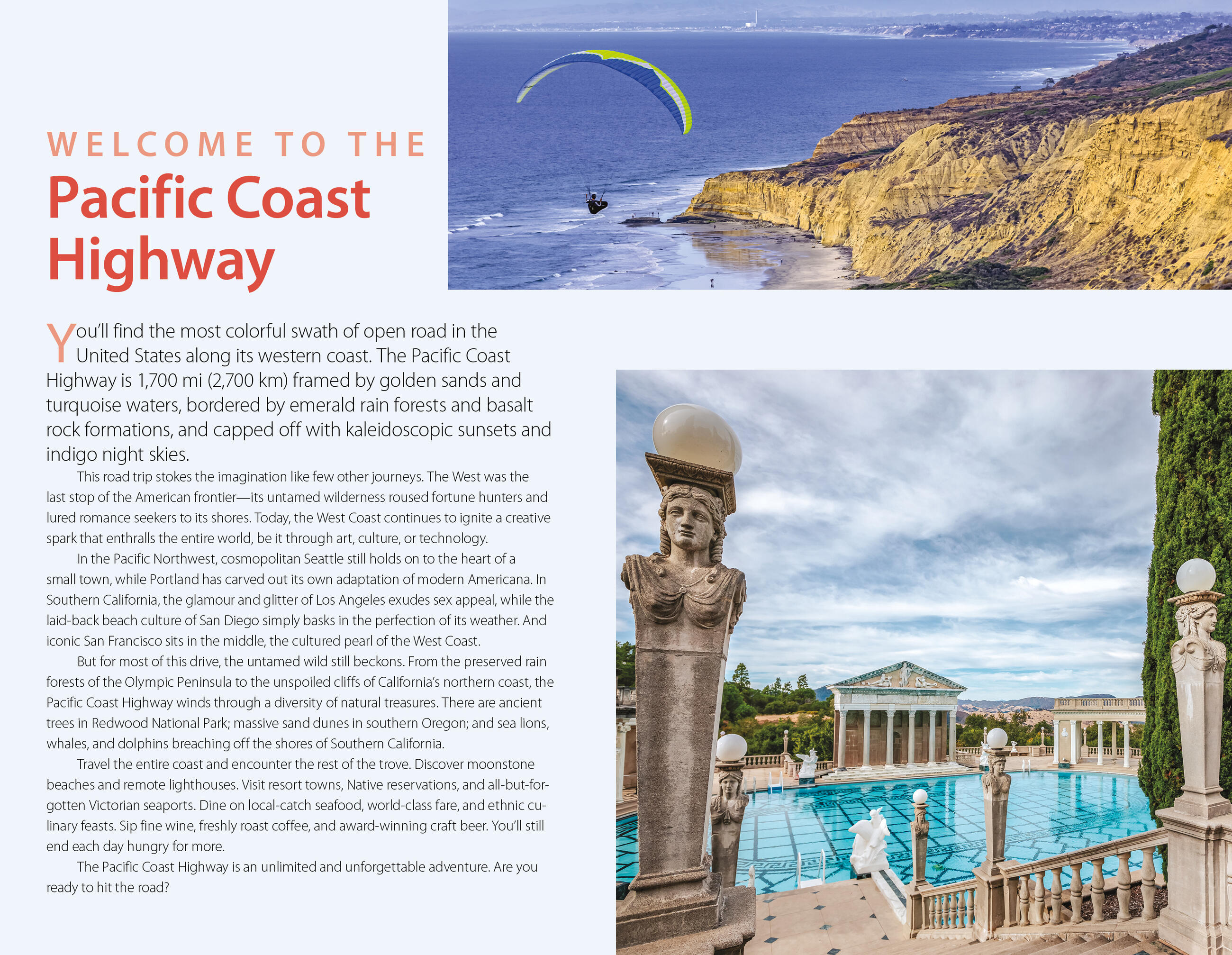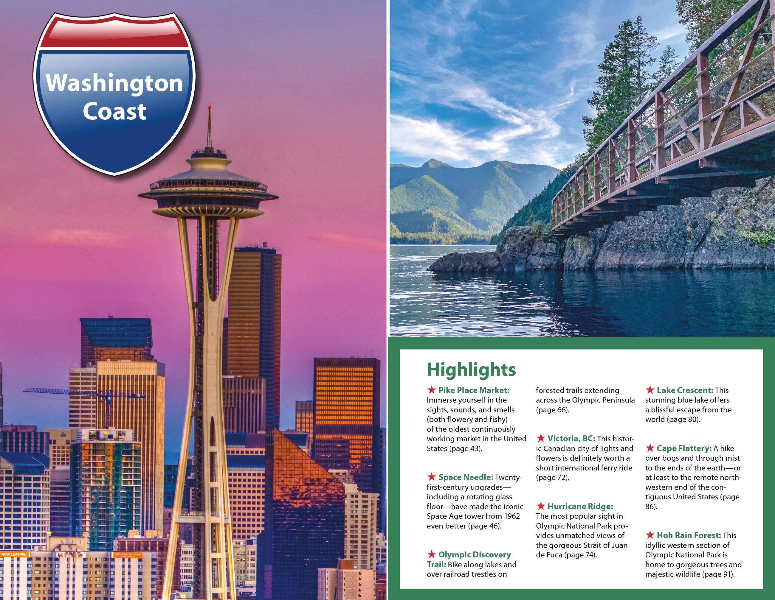 • Flexible itineraries: Drive the entire three-week route or follow suggestions for shorter regional getaways in Washington, Oregon, and California