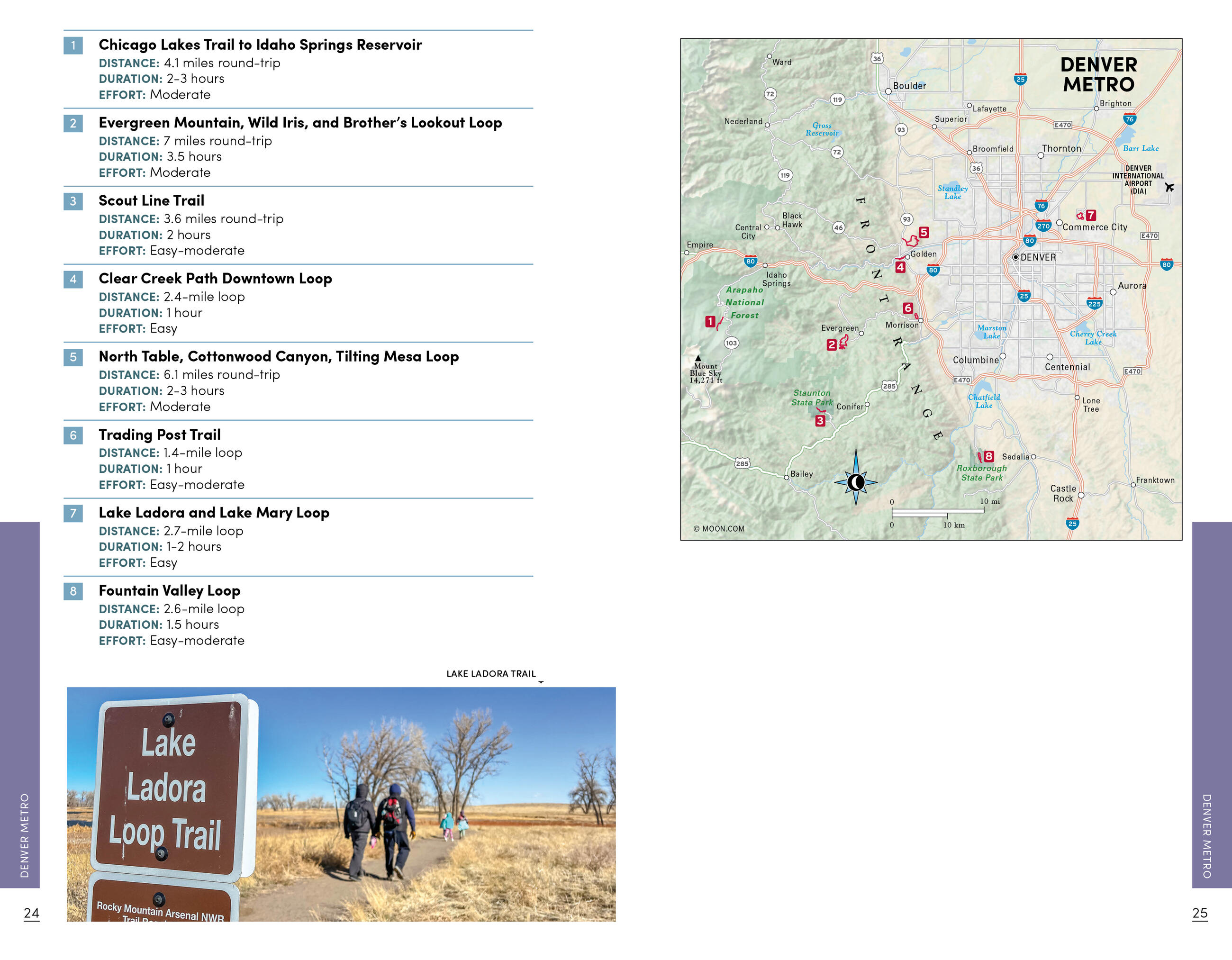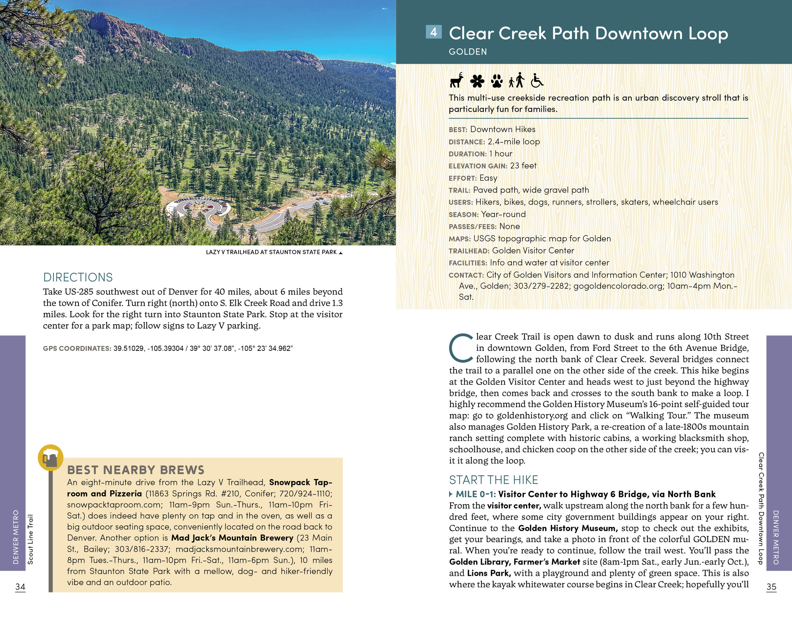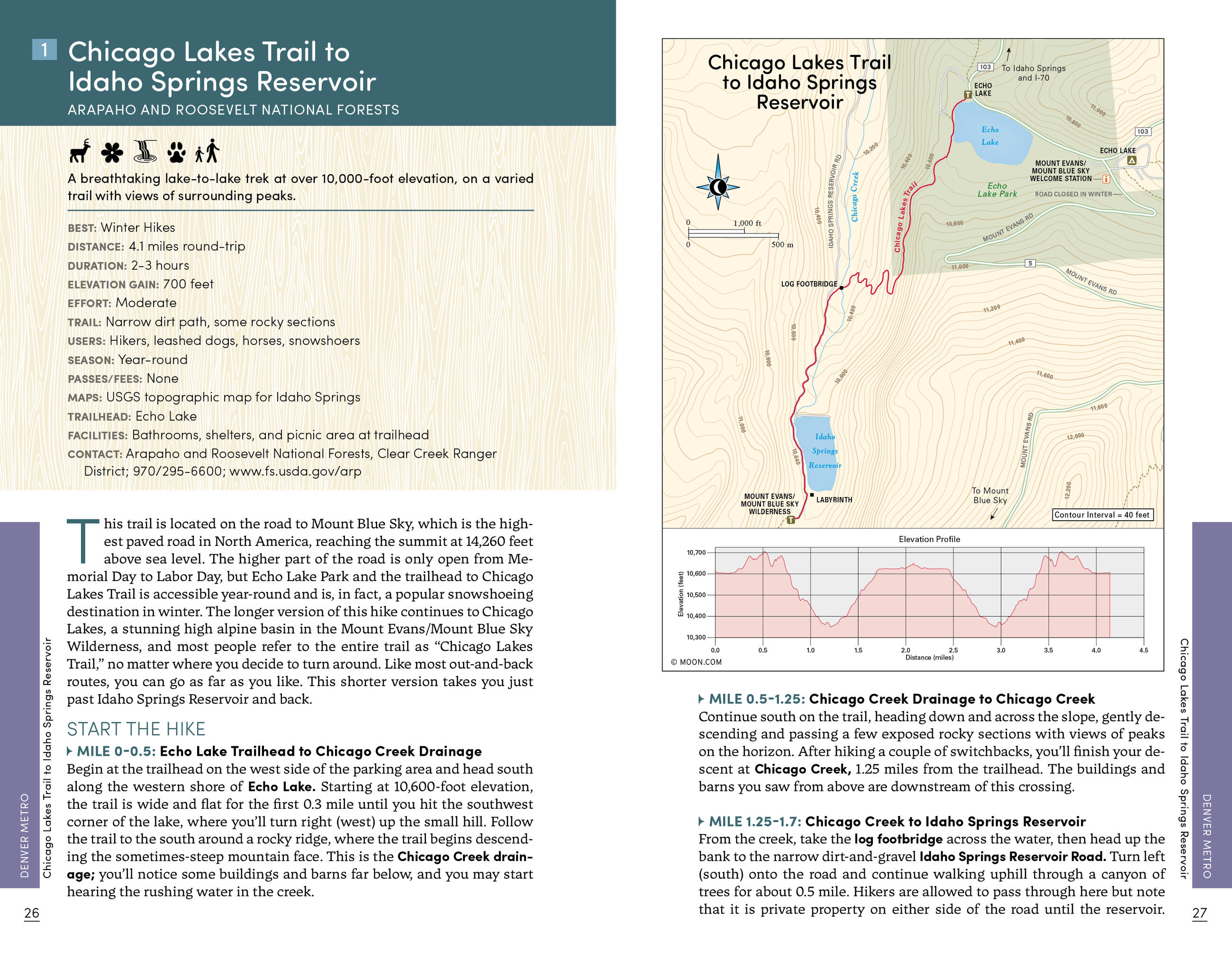 - Essential Planning Details: Each hike is described in detail and marked with round-trip distance and hiking time, difficulty, terrain type, elevation gain, and access points