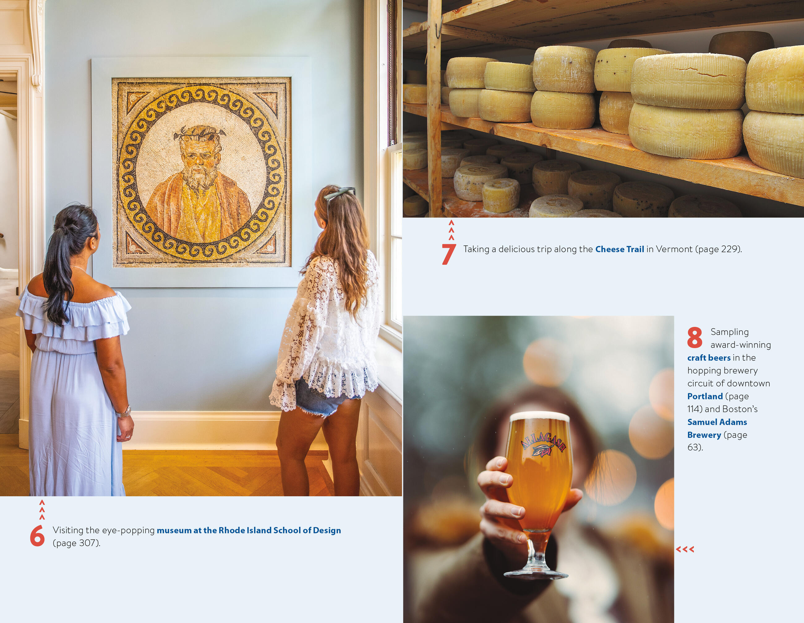 - Eat, Sleep, Stop and Explore: With lists of the best hikes, views, eateries, and more, you can trek among spruce trees in the White Mountains, cycle through Acadia National Park, or cruise down bucolic lanes of Woodstock. Take to the sea and spot humpback whales and puffin colonies, shop for wood-fired maple syrup, or snag a buttery lobster roll after a day at the beach. Dive into Boston’s revolutionary history, sample farm-fresh produce in the Berkshires, party in Providence, or sip your way through some of the area’s best microbreweries